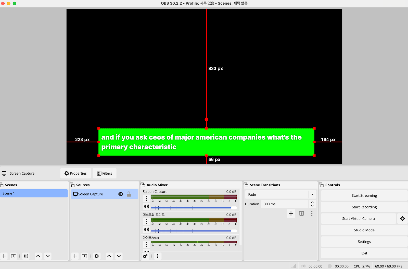 3. Adjust the capture area to only include the green subtitle box: