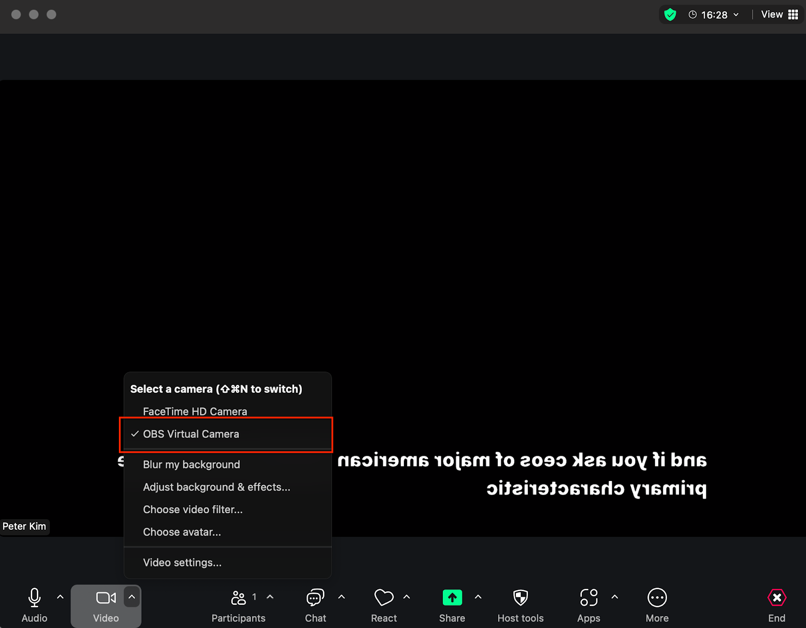 Once the OBS Studio screen appears in Zoom, you’re all set. Depending on your Zoom settings, the screen might appear mirrored.