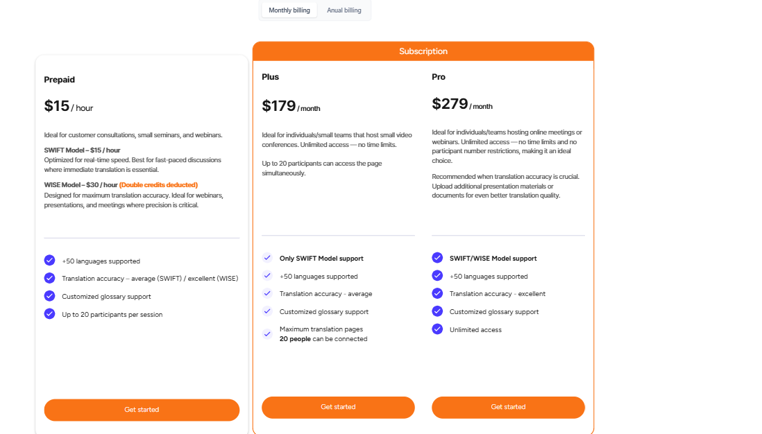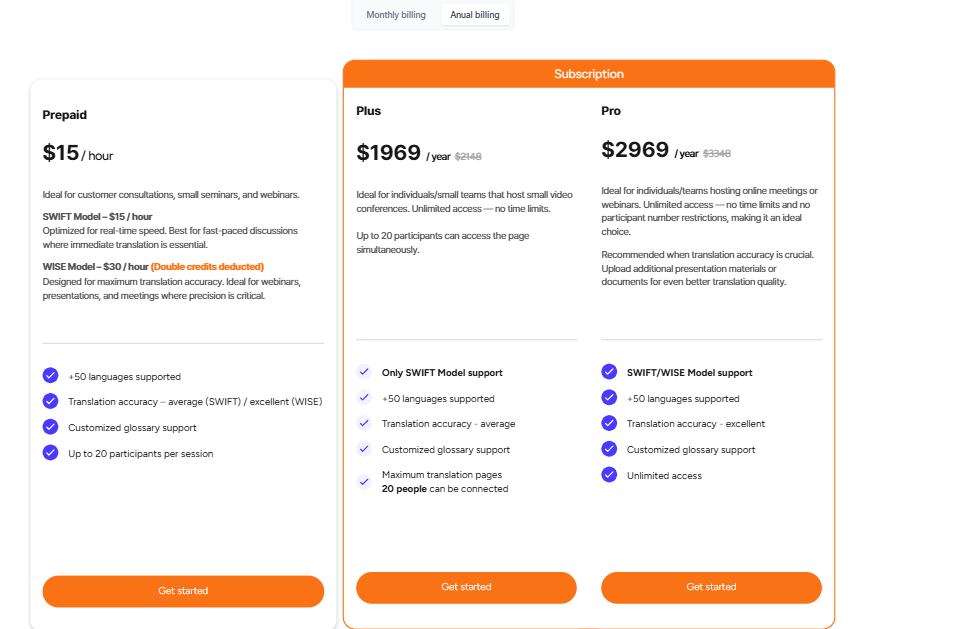 Wise: Offers higher accuracy. Ideal for external business meetings, academic presentations, and when you upload documents/presentations.