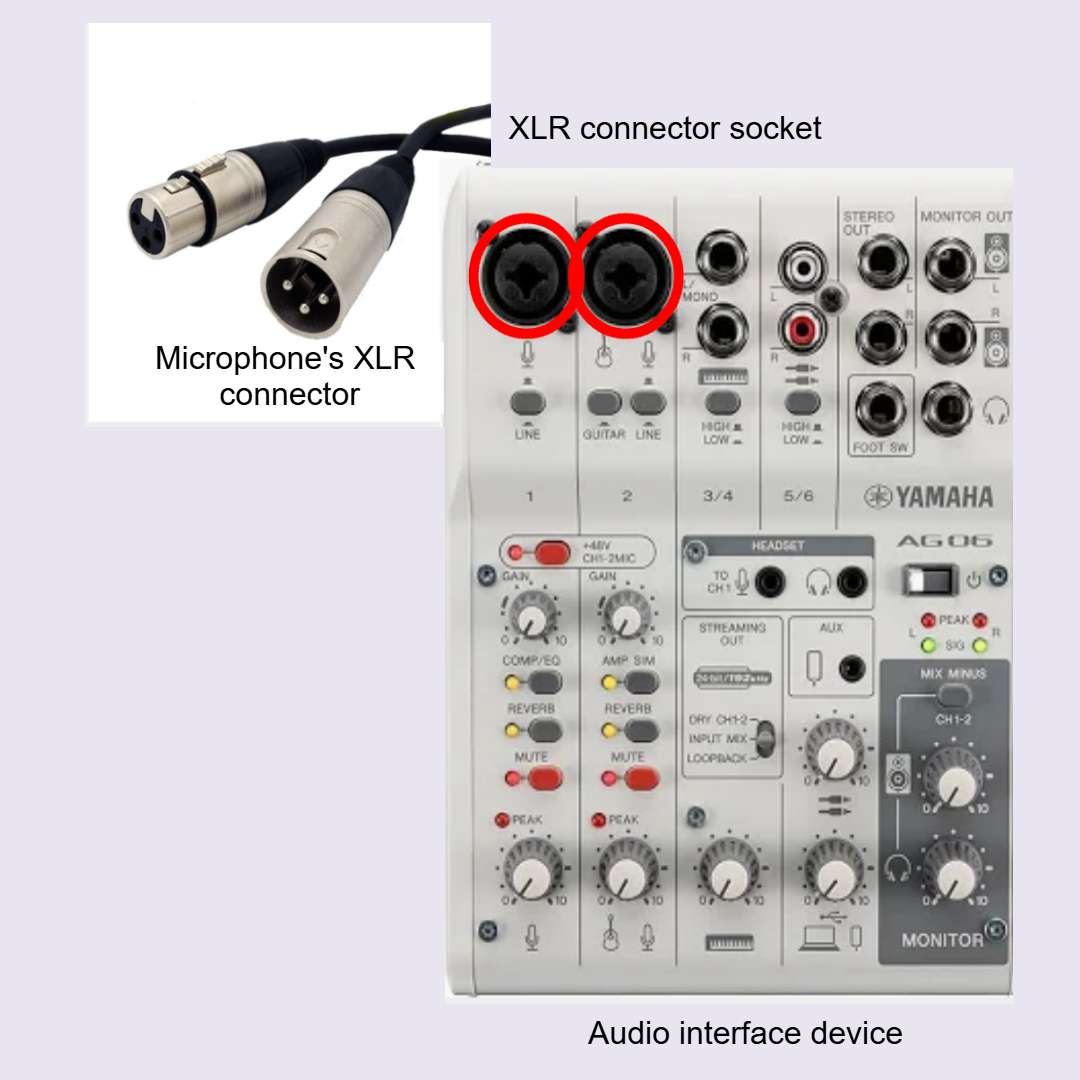Connect the microphone to the audio interface.