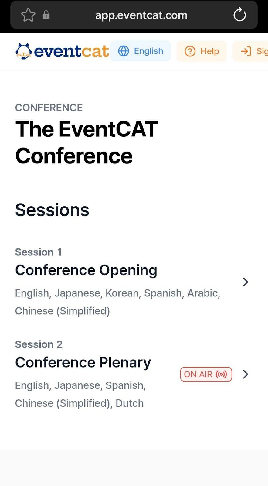 For events with a multinational audience, allowing participants to select their language directly from their devices reduces the operational burden.